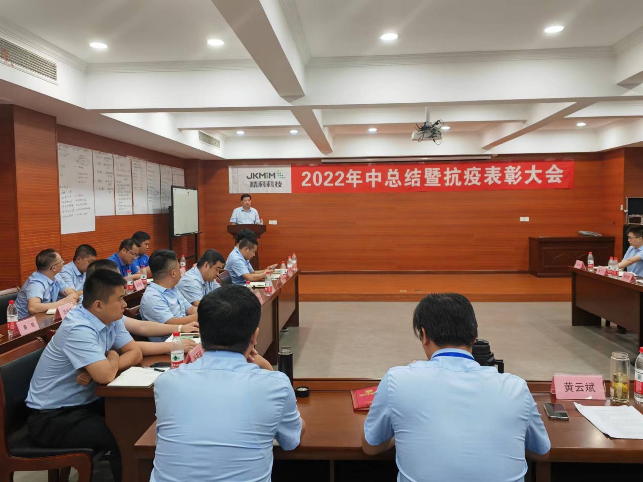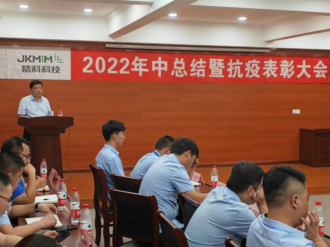 2022年7月23日下午,嘉興精科科技有限公司隆重舉行了2022年年中總結(jié)暨抗疫先鋒表彰大會。此次大會中,嘉興精科科技有限公司董事長,中共嘉興精科科技黨支部書記黃云斌同志對于2022年半年來的公司運營狀況進行了詳細總結(jié),同事對2022年下半程公司發(fā)展經(jīng)營規(guī)劃做出了重要指示。在2022年上半年中,公司先后遭逢了兩次疫情風控管制,在這兩次疫情風控管制中涌現(xiàn)出許多在公司危難之際精誠奉獻的優(yōu)秀員工,在此次會議中隆重表彰了在2022年上半年兩次疫情風控中為公司抗疫奮戰(zhàn)中做出杰出貢獻的員工。